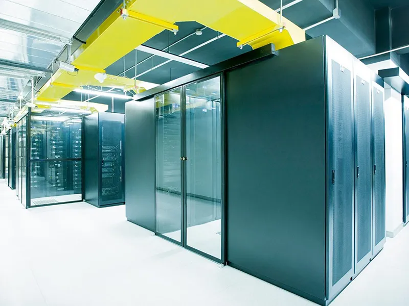 Sıcak/soğuk koridor muhafaza sistemleri: fanlar, soğuk havanın sadece ekipman girişlerine akmasını sağlamak için koridor muhafazası ile birlikte çalışırken, sıcak hava özel yollarla sınırlandırılırken, soğutma verimliliğini arttırır.
